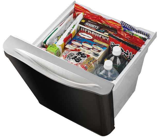「くつろぎをデザインしよう」をキーコンセプトに、シンプルなステンレスデザインを採用した家電ブランド「URBAN CAFE SHRIES」(アーバンカフェシリーズ)の2ドア冷蔵庫。家電の定番色であるホワイトではなく、シルバーとブラックで配色を統一し、すっきりとした印象を与えます。整理しやすい3段引き出し式の冷凍室は、ケース内の食材が見やすく、取り出しやすいのが特徴。冷気も逃がしにくいタイプで、冷凍食品のまとめ買いにも向いています。