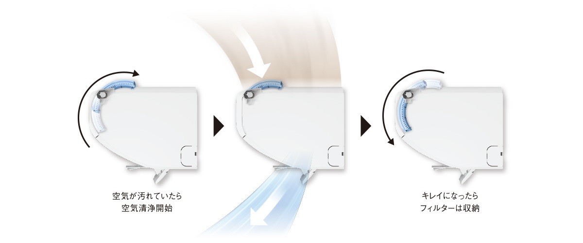 動くフィルターで空気清浄機としても使える!
