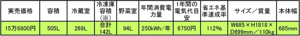 ※製氷室の容量含む