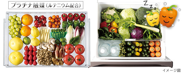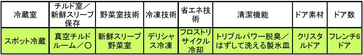 「片開き・ガラスドアのスリムシリーズ。日立の人気機能は搭載しつつ、少しずつ性能を絞り込んだスタンダードモデルです。チルドルームには『新鮮スリープ保存』がなくなりますが、人気の『真空チルド』は搭載。真空チルドルームを『チルド』と『氷温』に切り替えられる機能もあり、チルド機能は十分です。『新鮮スリープ野菜室』は下段のみ。長く保存したい野菜は下段へ、すぐに消費するなら上段へと収納場所を工夫するのがオススメです。
