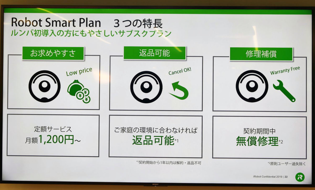 この「世帯普及率10%」の壁になっているのが、主に「従来型の掃除機を好む」「値段が高い」「キレイに掃除できないと思う」の3つ。この3つの障壁を超えるために、世界で初めて導入するのがサブスクリプションサービス「Robot Smart Plan(ロボットスマートプラン)」、通称“ロボスマ”なのです。