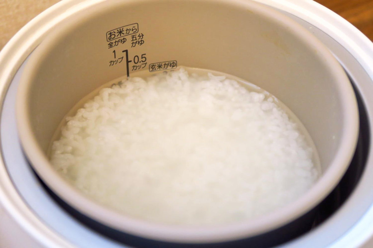 このおかゆメーカーには、白がゆだけでなく玄米がゆのモードもあるんです。これまで白がゆしか作ったことがなかったのですが、せっかくなので「玄米がゆ」も作ってみました。
