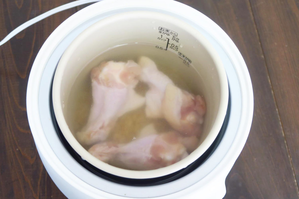付属のレシピブックを参照し、発芽玄米、骨付きの鶏肉を使った「中華風玄米がゆ」に挑戦。白がゆに比べると炊飯時間が長く、2時間弱かかるとのこと。これは少し時間に余裕があるときに試すと良さそうです。