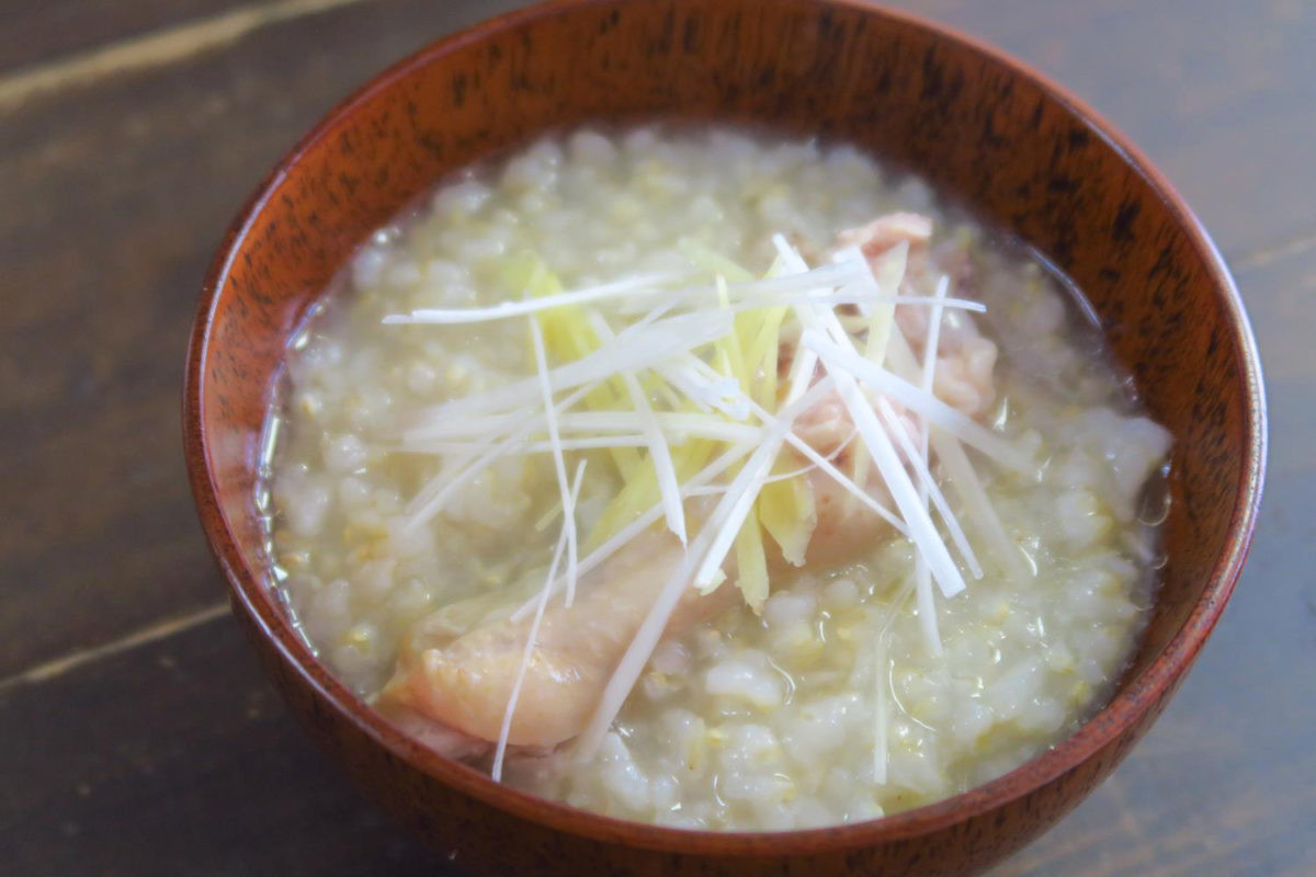骨付きの鶏肉を使った「中華風玄米がゆ」に挑戦!