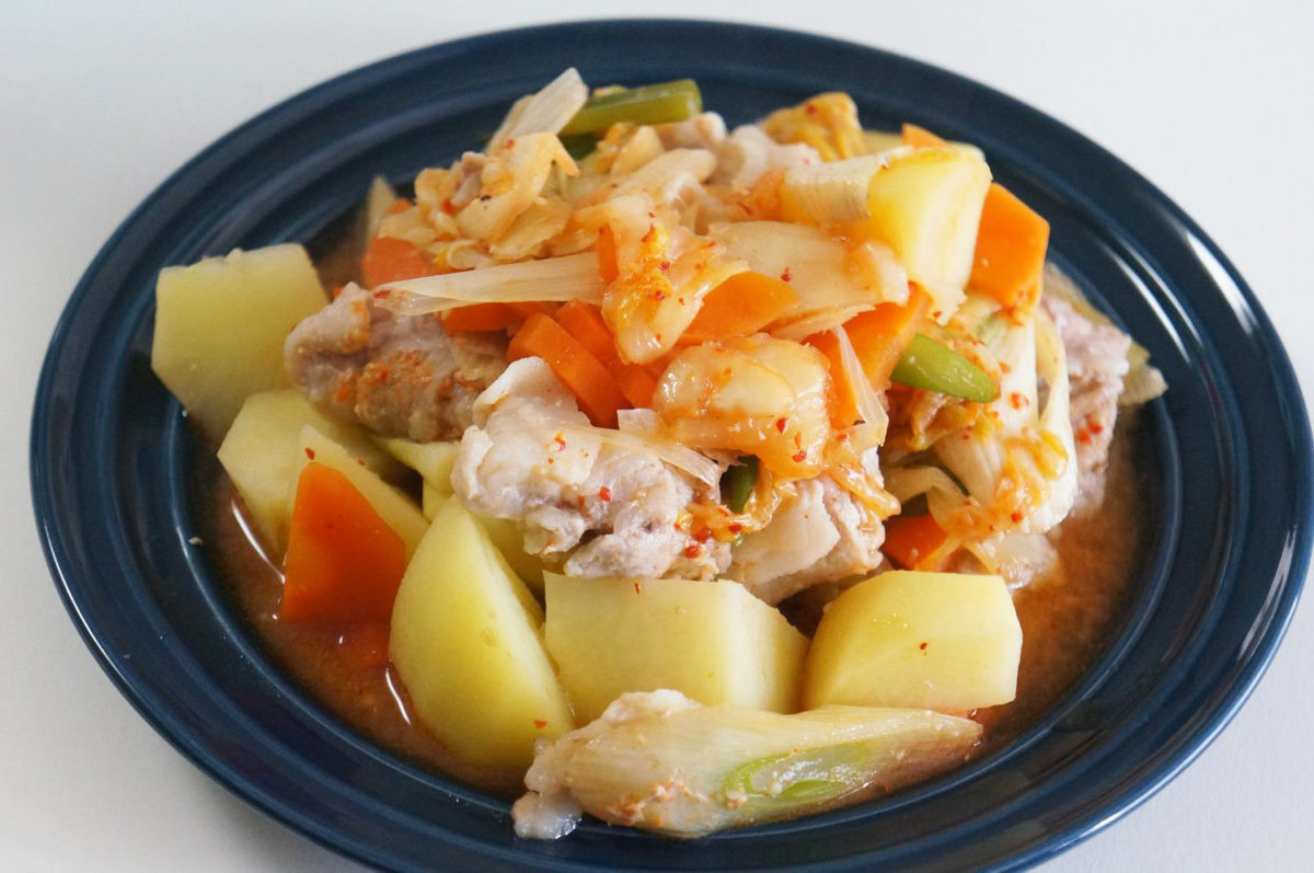 完成した肉じゃがは、いつもの甘辛い味付けのものとは異なり、キムチの辛さがピリッと効いたおつまみにぴったりな味。じゃがいもや人参などある程度煮込みが必要な根菜もほくほくに仕上がっており、少ない手間でこれだけのおかずができるのはうれしい限り。鍋を見守る必要もないので、これから暑くなる季節には、なおさらありがたく感じます。