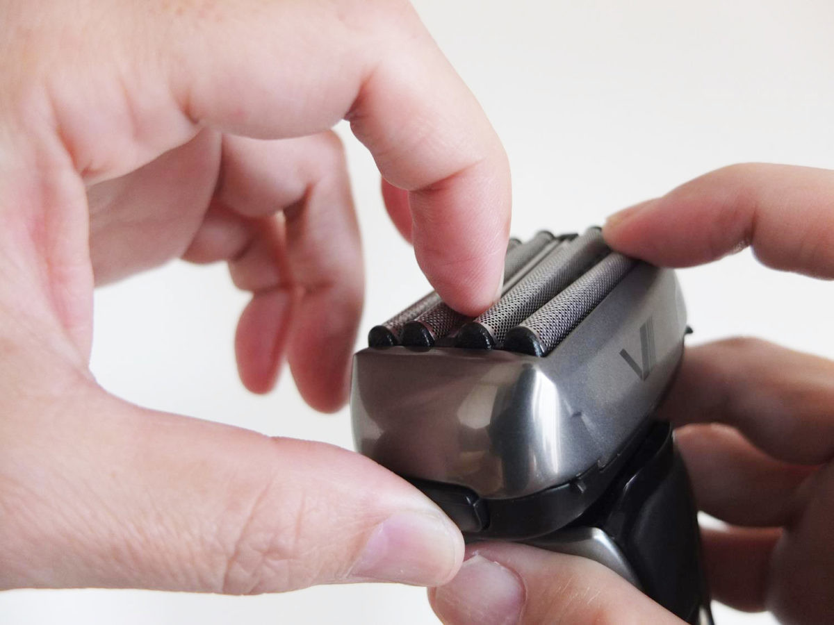 一方メンテナンス面では、自動洗浄機能がない「LED光乾燥器」を付属。過去モデルでは洗浄乾燥器を付属していましたが、洗浄液買い替えの手間とコストを嫌って使わなくなる人が多かったため、自動洗浄機能はカットしたそうです。その代わりに採用されたのがLED照射機能で、光触媒コーティングを施した内刃にLED光を当て、温熱を加えることで、刃に付いた雑菌やニオイを除去・抑制。シェーバーの清潔さを保てます。
