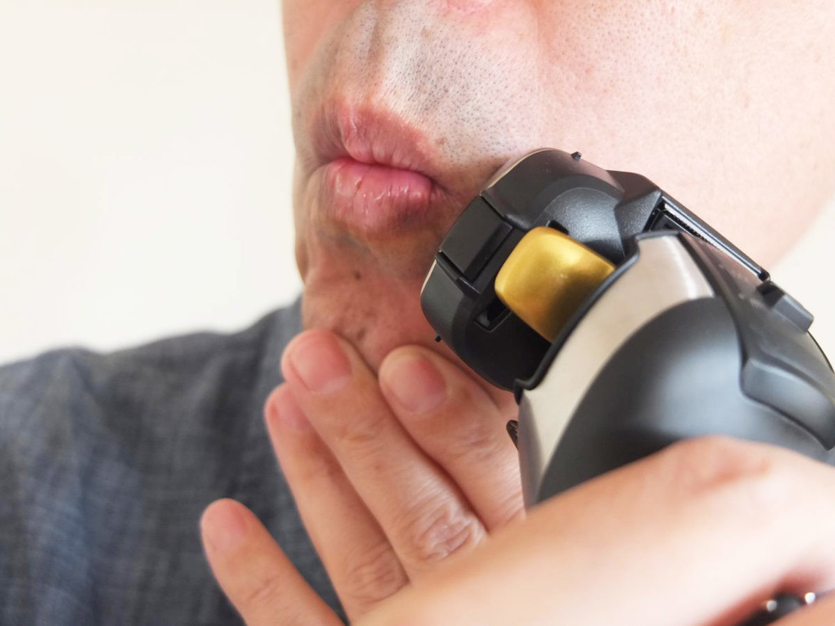 ちなみに、ロータリー方式だと5枚刃や4枚刃の往復式より肌に触れる面積が小さく、そのぶん肌に負担がかかります。ですから、肌のひりつきを抑えるには、できるだけ肌に圧力がかからないよう「撫で剃り」することが重要。シェービング時間もやや長めに取る必要があります。