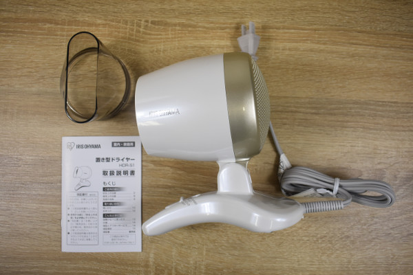 今回紹介するのは、アイリスオーヤマより発売中の「ハンズフリードライヤー HDR-S1」。なんと両手が空いた状態でドライヤーが使える画期的なアイテムなのです。