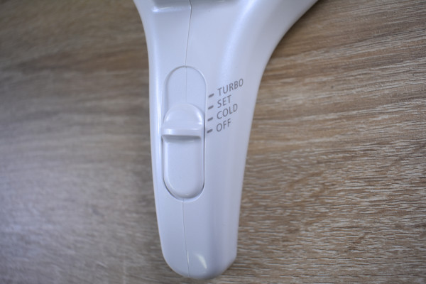 それでは早速、使い心地を確かめてみましょう。“SETモード”で動かすと、低音で優しい風が吹き出して音もなかなか静かな印象。“TURBOモード”にすれば、1.6立方メートル/分の大風量で素早く髪を乾かせます。マイナスイオンが静電気を抑えてくれるため、髪を広がりにくくしてくれるのもポイント。ブラシでセットしながら髪を乾かせました。