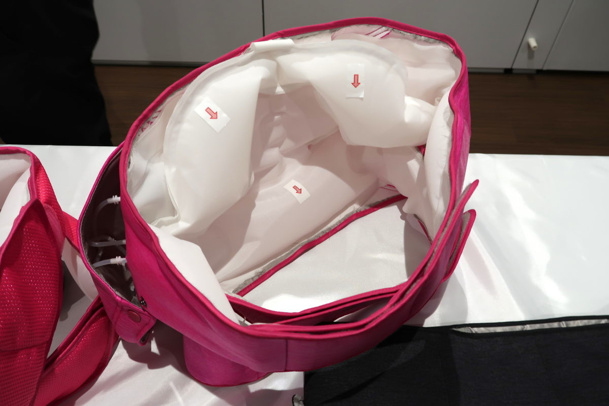 ベルト部分のサイズはW130(上ベルト)、W126(下ベルト)×D5.5×H42cm。ベルト対応サイズは、周囲約80~110cmまで。実売想定価格は3万円前後(税別)を予定しています。