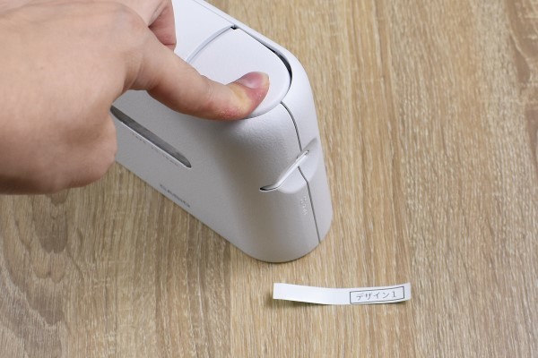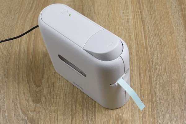 それでは、早速使ってみましょう。本体はACアダプター、もしくは単3形電池6本で稼働します。本体の電源をつけた状態でスマホのBluetoothをオンにすれば、承認画面が出てくるので「同意する」をタップして連携。試しにアプリの“ラベルを自由に作る”でデザインを選択して印刷マークを押すと、あっという間にテープがプリントされました。後は本体の“テープカットボタン”を押したら完成です。難しい操作は何もないので、これなら誰でも簡単にラベルが作れそう。