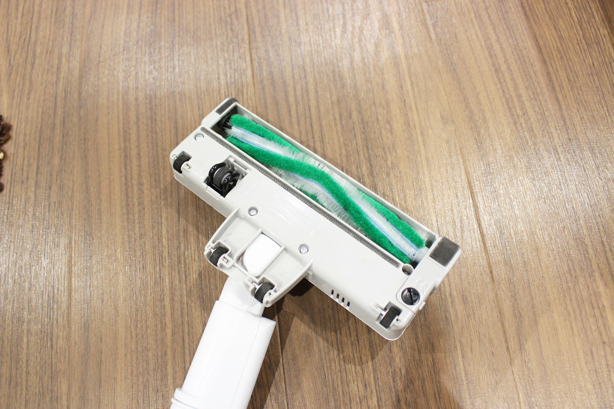 またノズルには、昔ながらのほうきにならい、ブラシタイプを採用しました。硬い毛と柔らかい毛を組み合わせており、硬い毛が畳やじゅうたんからゴミをかき出し、柔らかい毛がフローリングを拭き掃除するように拭き上げます。またブラシ前方のカバーを薄くすることで、ブラシが壁際まで届き、ゴミをしっかりと捕集します。