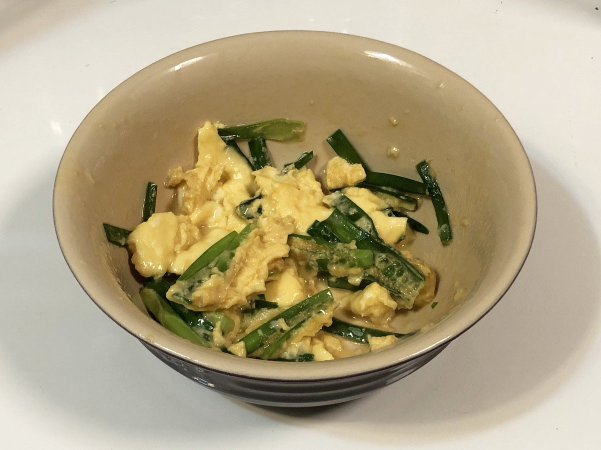 「にら玉」を作ってみたところ、卵にニラと調味料を合わせて混ぜ、約1分10秒加熱してからしょうゆとごま油を合わせて混ぜるだけでできあがり。食感の面ではやはりフライパンでサッと作った方がおいしく仕上がるのは確かですが、手軽につまみが作れるのは便利です。