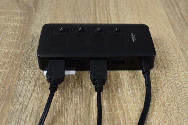 それでは、早速使ってみましょう。試しにハードディスクドライブを使って大容量のデータを転送すると、速度が一目瞭然。USB2.0より約10倍は速い印象でした。用が済んだらスイッチを押すだけでOFFになるため、使い心地もバツグン。これなら消費電力の大きいUSB機器を使用しても作業がスムーズに進みそう。