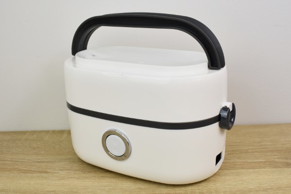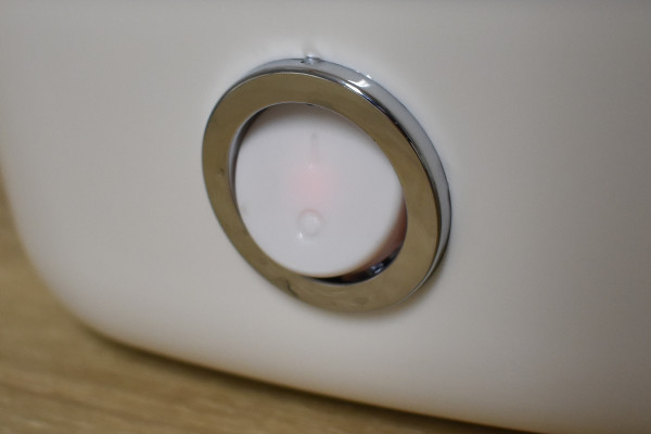 本体がホワイトカラーの同商品のサイズは、225(幅)×135(奥行き)×155mm(高さ)。お弁当箱のような形をしていますが、スイッチや電源コネクタがとてもスタイリッシュな印象です。