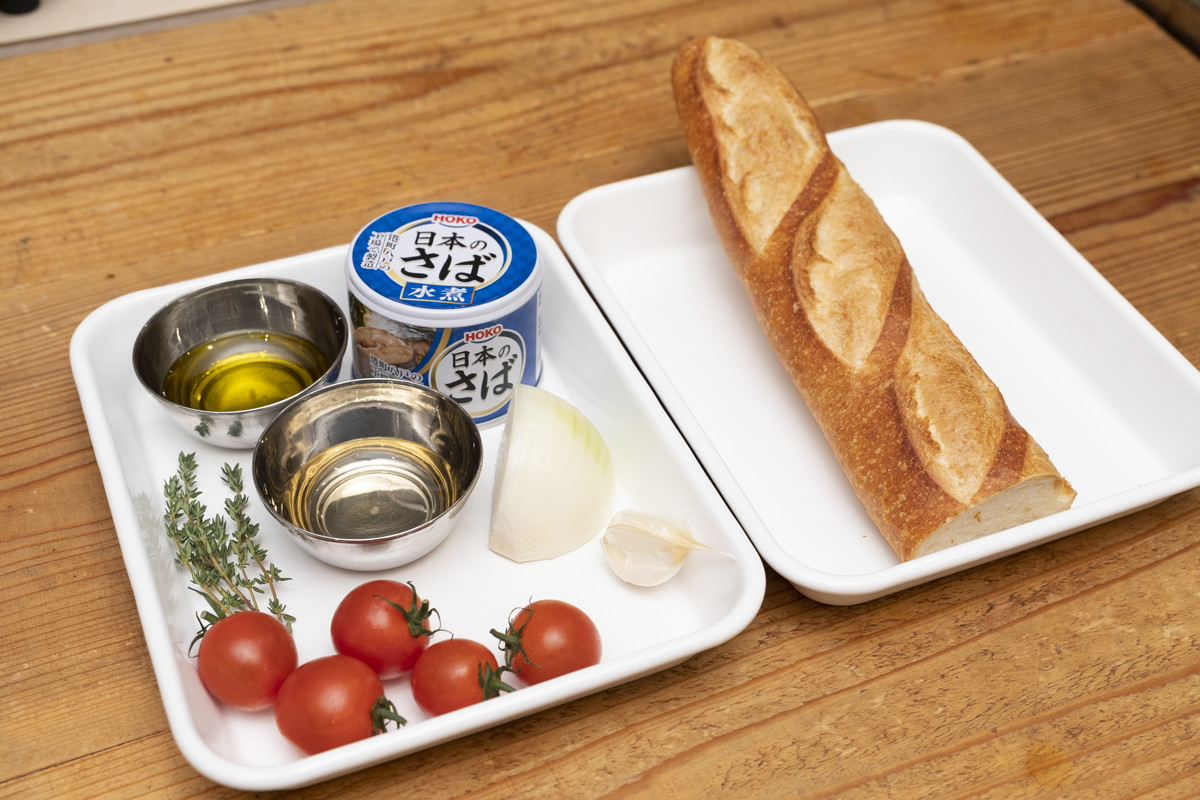 中山 おぉ、ブルスケッタといえば、あのオシャレなやつ。フランスパンを使ったオープンサンドですね! しかもいま流行りのさば缶を使うとは。トレンド感もあってホームパーティでドヤれそう!