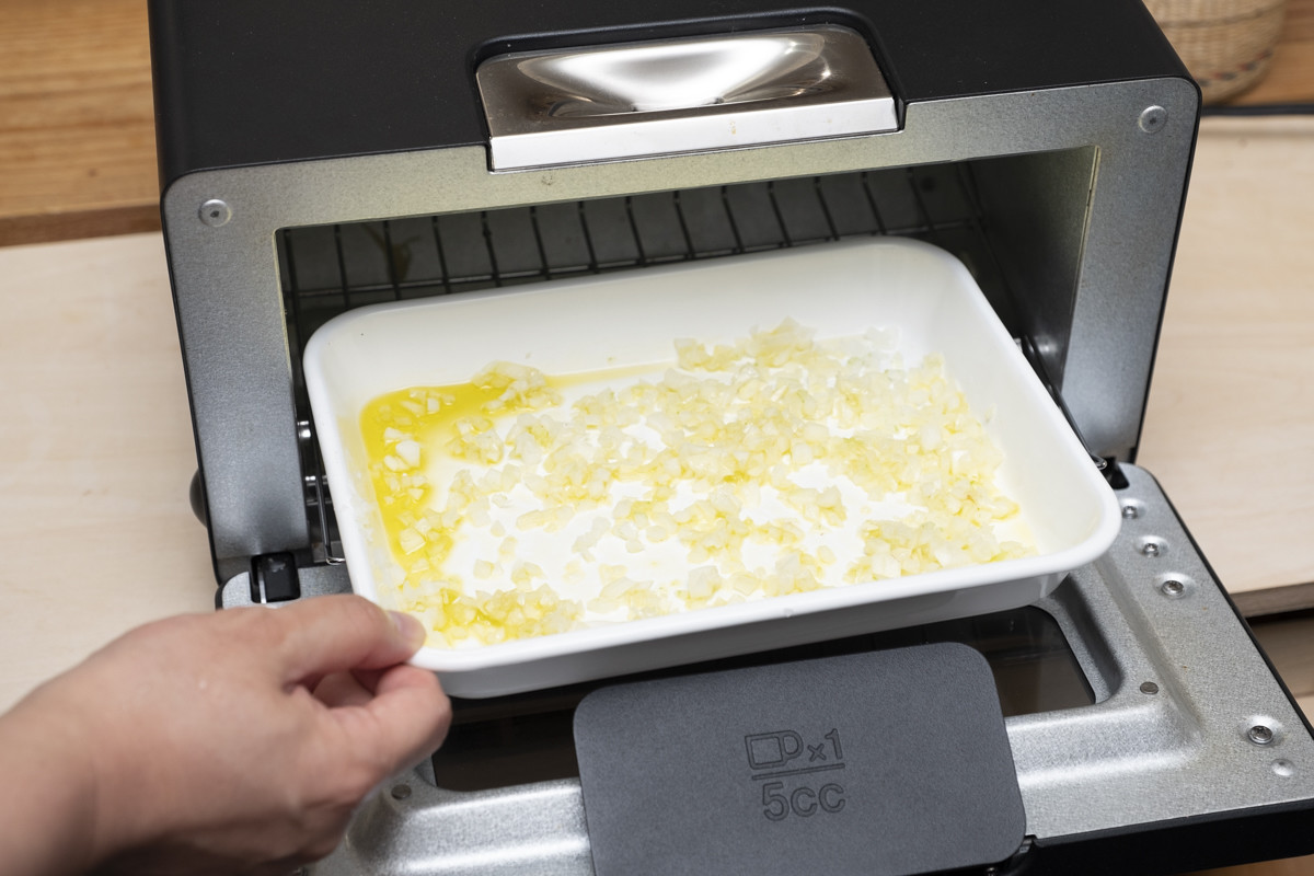 山田 なら話が早い。実はBALMUDA The Toasterにちょうど収まる野田琺瑯のホワイトバットが、公式アクセサリーで用意されてるんです。しかも僕らのオリジナルレシピブック付きで。そのバットをこのレシピでは使っていきますね。