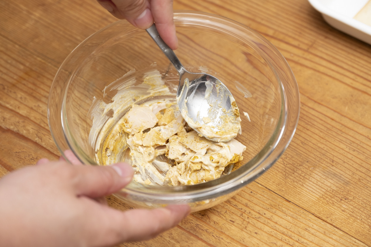 中山 味付けはマヨネーズにカレー粉に黒こしょう! こりゃ絶対裏切らない! ああっ、でも材料にクレソン。クレソンか……。