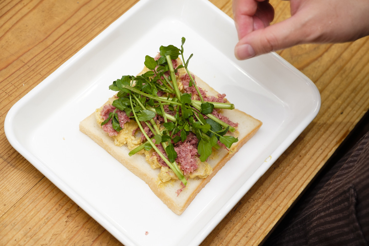 山田 ホットサンドは、BALMUDA The Toasterが出たときからずっと作りたいと思ってたんですけど、プレスするわけじゃないので難しいなと。でも薄切りの食パンを重ねれば、スチームの効果があるから中まで熱が通るんじゃないかって思ったんです。
