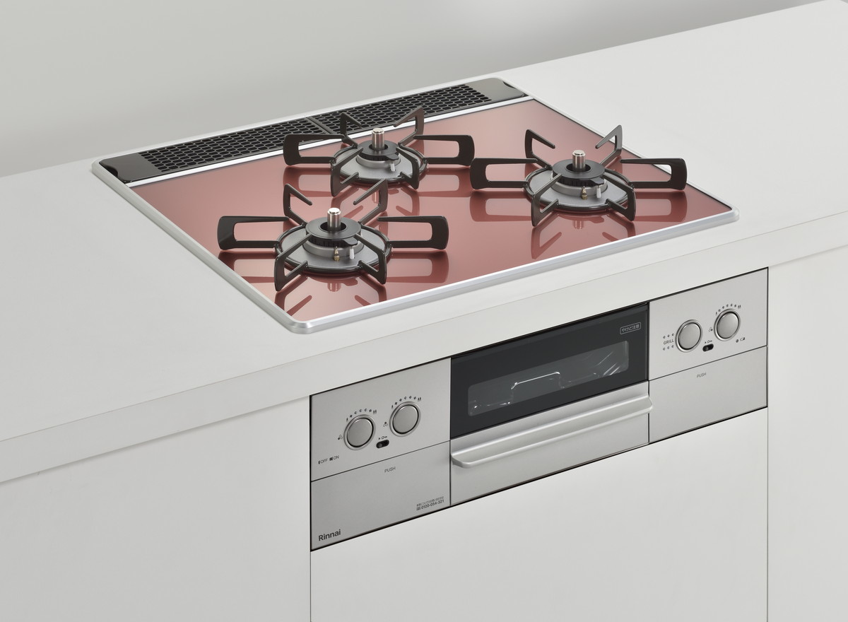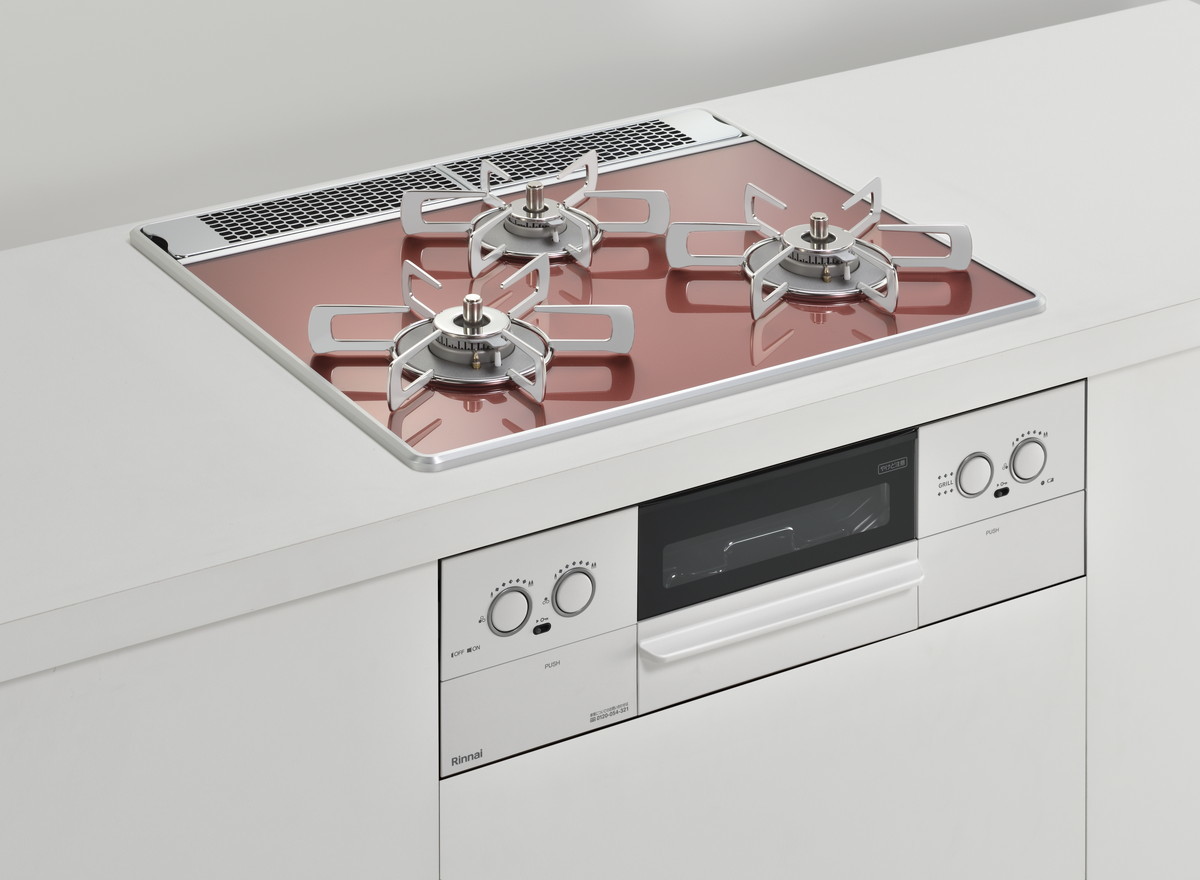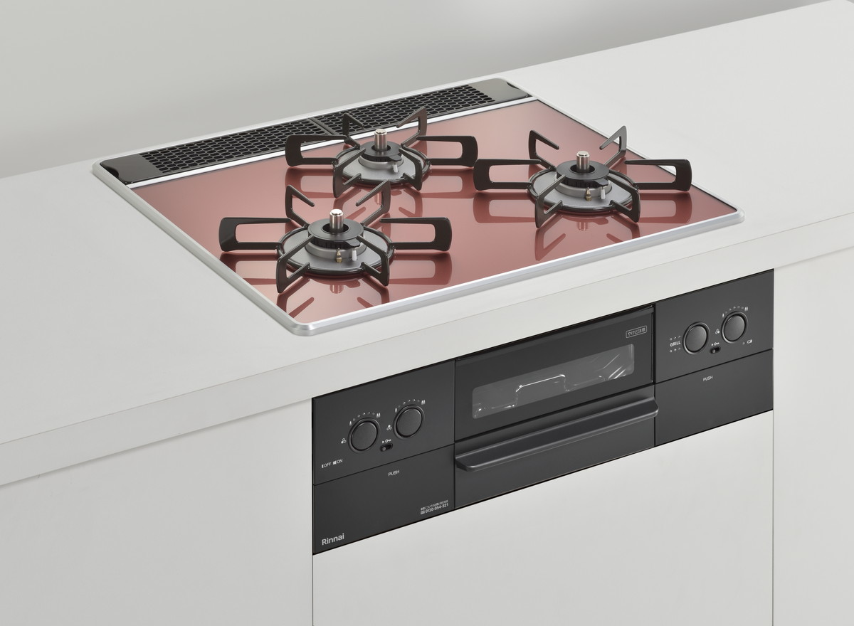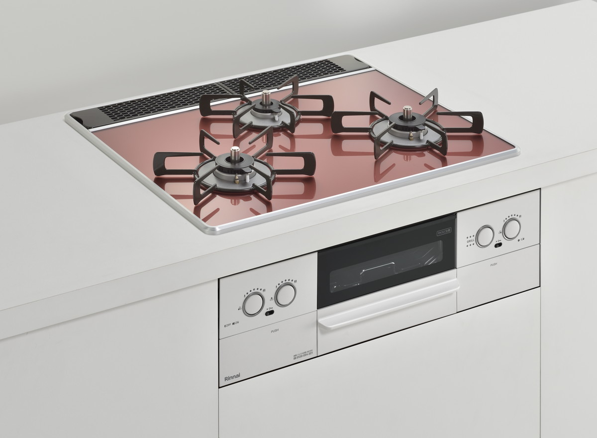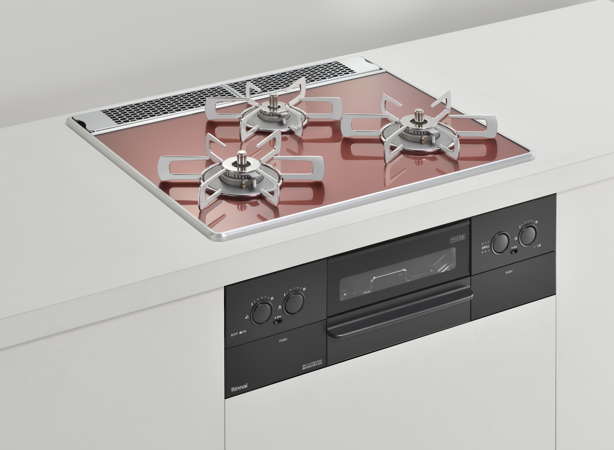 特に天板は木目調のキッチンに合う「レモングラスグリーン」や、インダストリルなキッチン向けの「アーバンネイビー」、チャーミングな「ガーネットレッド」などカラバリが豊富。ビルトインコンロというと白や黒のイメージが強いですが、それをいい意味で裏切るスタイリッシュなカラーが用意されています。