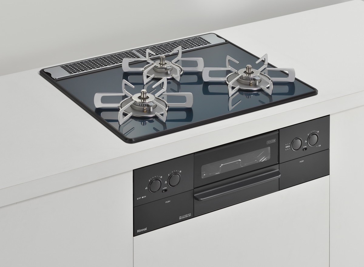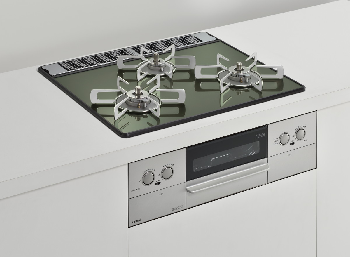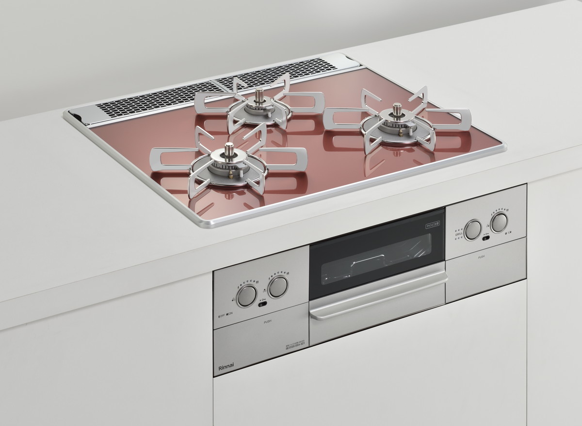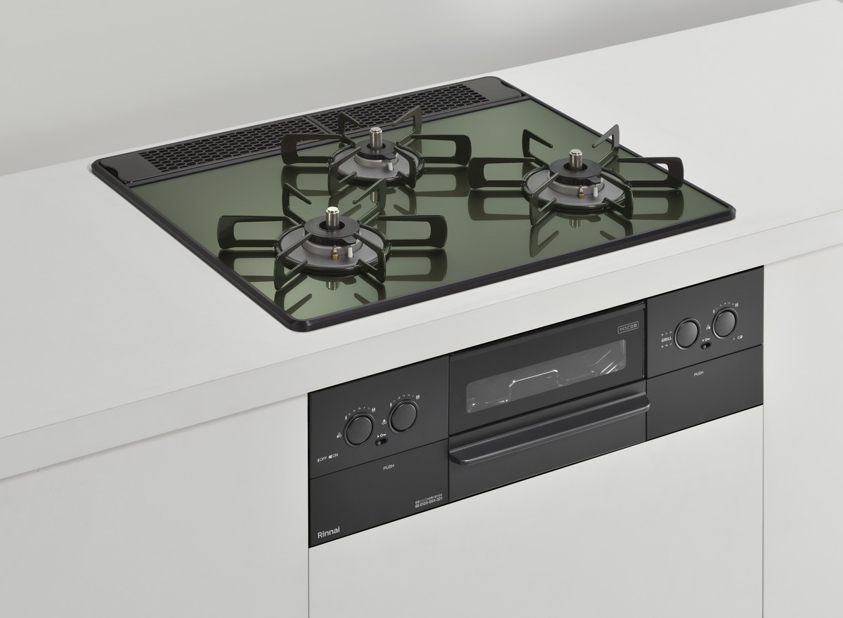 特に天板は木目調のキッチンに合う「レモングラスグリーン」や、インダストリルなキッチン向けの「アーバンネイビー」、チャーミングな「ガーネットレッド」などカラバリが豊富。ビルトインコンロというと白や黒のイメージが強いですが、それをいい意味で裏切るスタイリッシュなカラーが用意されています。