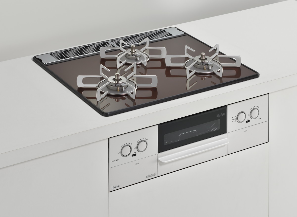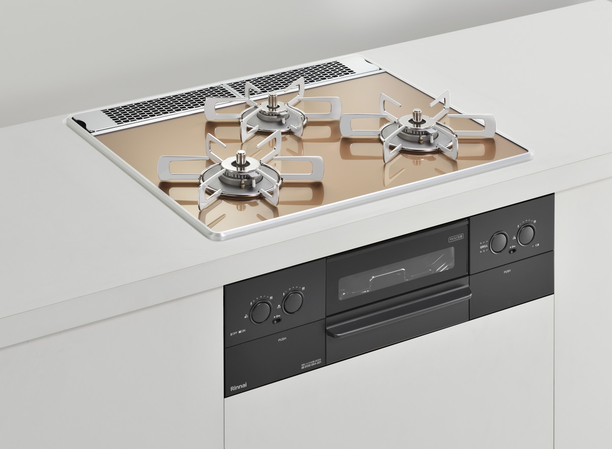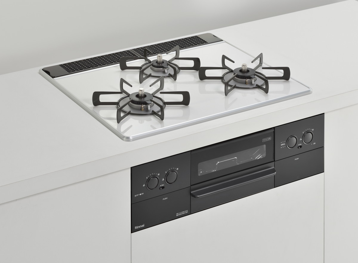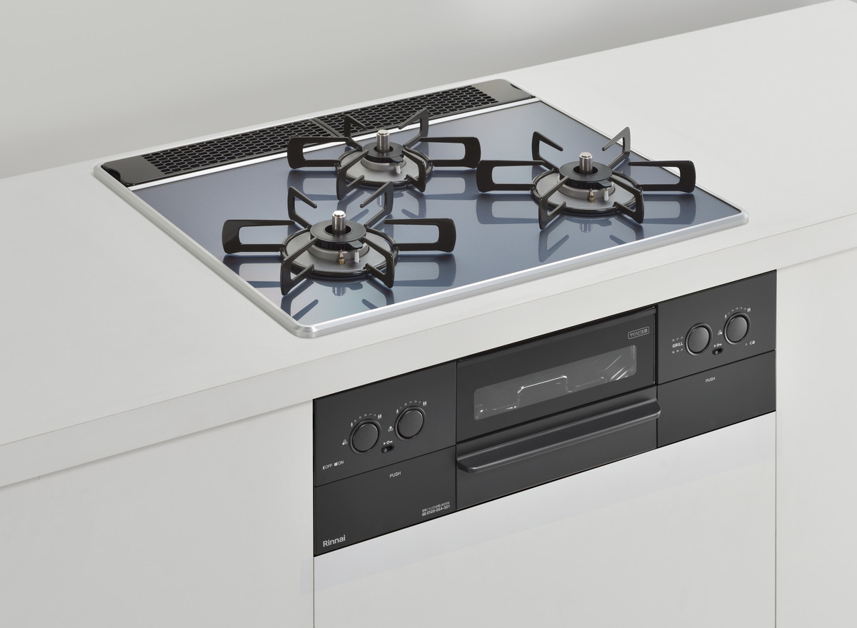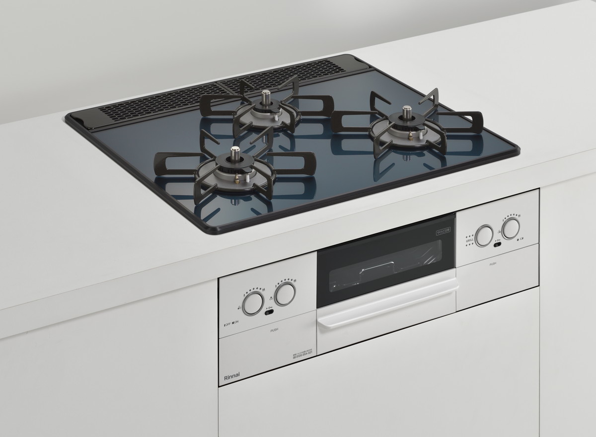 特に天板は木目調のキッチンに合う「レモングラスグリーン」や、インダストリルなキッチン向けの「アーバンネイビー」、チャーミングな「ガーネットレッド」などカラバリが豊富。ビルトインコンロというと白や黒のイメージが強いですが、それをいい意味で裏切るスタイリッシュなカラーが用意されています。