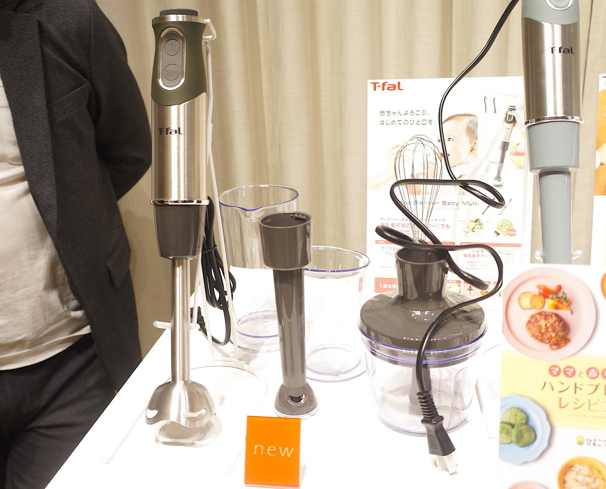 衣類スチーマーやアイロンのほかに、キッチン家電も充実していました。少量の離乳食作りに最適な「ハンドブレンダー ベビーマルチ」や、1.2Lものお湯が沸かせる温度コントロールタイプの電気ケトル「ジャスティン プラス コントロール 1.2L」といった商品が新登場。ピンポイントなユーザーに絞ったキッチン家電は、ティファールならではといえます。