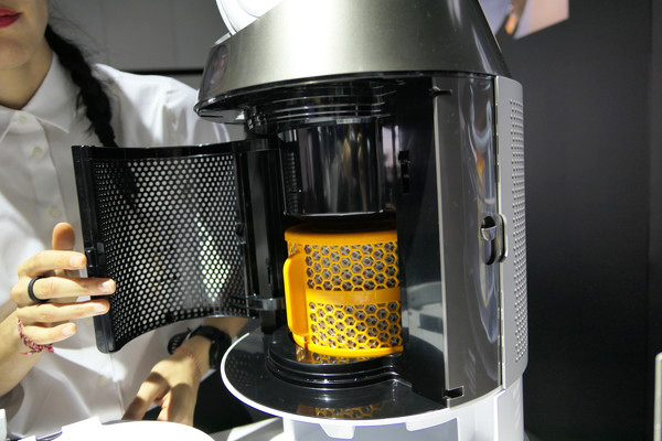 続いて、空気清浄機能に目を向けてみましょう。フィルターには、密閉性の高い「360°グラスHEPAフィルター」とその内側に「活性炭フィルター」を搭載。PM0.1レベルの微粒子を捕らえます。微粒子を検知するレーザーセンサー、VOCセンサー、温度・湿度センサーを搭載しており、LCDディスプレイのリアルタイムでデータを追跡します。