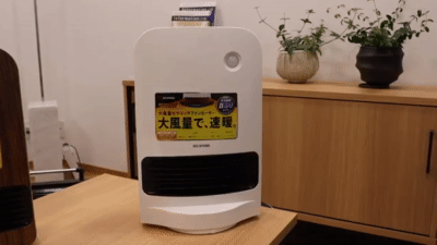 なお、首振り機能のない「人感センサー付き大風量セラミックファンヒーター KJCH-12TD4」も同時発売。参考価格はホワイト・ブルー・ピンク・薄木目は1万800円、濃木目は1万1800円(税抜)。