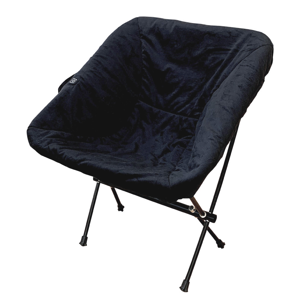 本体に取り付けられたUSBケーブルに、スマホのモバイルバッテリーなどを取り付けるだけで、カバー内部のヒーターコイルが最大55℃まで発熱。背中とお尻側の2か所を温める構造となっています。 また、付属のUSB保護カバーを装着することで、洗濯機を使って丸洗いも可能。適合するチェアのサイズは、同社が販売するクルーズチェアだけでなく、ヘリノックス社に代表されるチェアワンや、折りたたみ式のコンパクトチェアなど様々なメーカー品にも互換性があります。冬の時期のアウトドアシーンで利用できるほか、家庭内でもクッションや座椅子などに取り付けて使えるのが便利です。