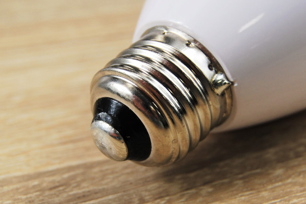 白と銀の色合いが美しい同商品は、グラスのような形をしたオシャレなデザイン。サイズは約67(外径)×122mm(全長)、重さは296gほど。口金は“E26口金”を採用しており、一般電球の40形に相当する大きさでした。