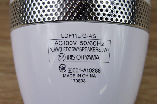 電球にスピーカーを搭載した「LDF11L-G-4S」(アイリスオーヤマ)