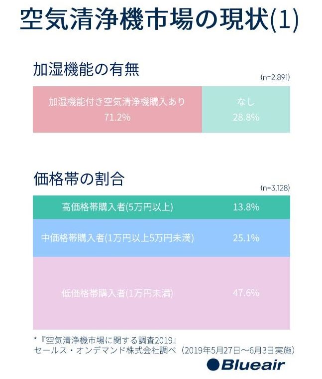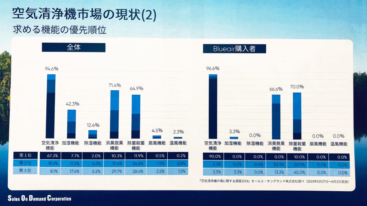「これはブルーエアにとっては非常に困ったデータです」と室﨑氏。というのも、ブルーエアの空気清浄機には加湿機能がついておらず、フラッグシップモデルは5万円を大きく上回っています。
