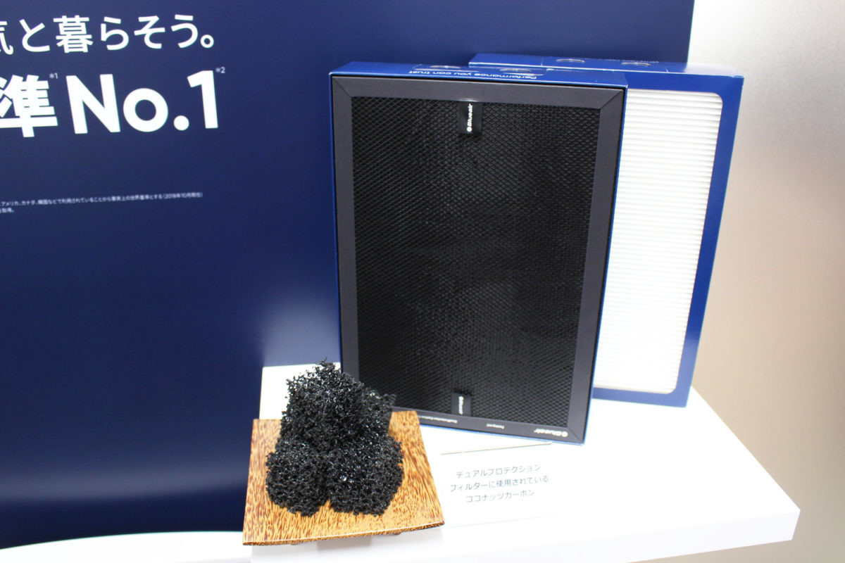 新モデルの特徴は、除臭性能が高い「デュアルプロテクションフィルター」を採用した点。従来のダストフィルターに、除臭性能が高く環境にも優しい「ココナッツカーボン」をフィルターを重ねることで、空気清浄性能はそのままに、3大生活臭といわれる「糞便臭」「ペット臭」「タバコ臭」をわずか5分で99%以上除去することが可能になりました。