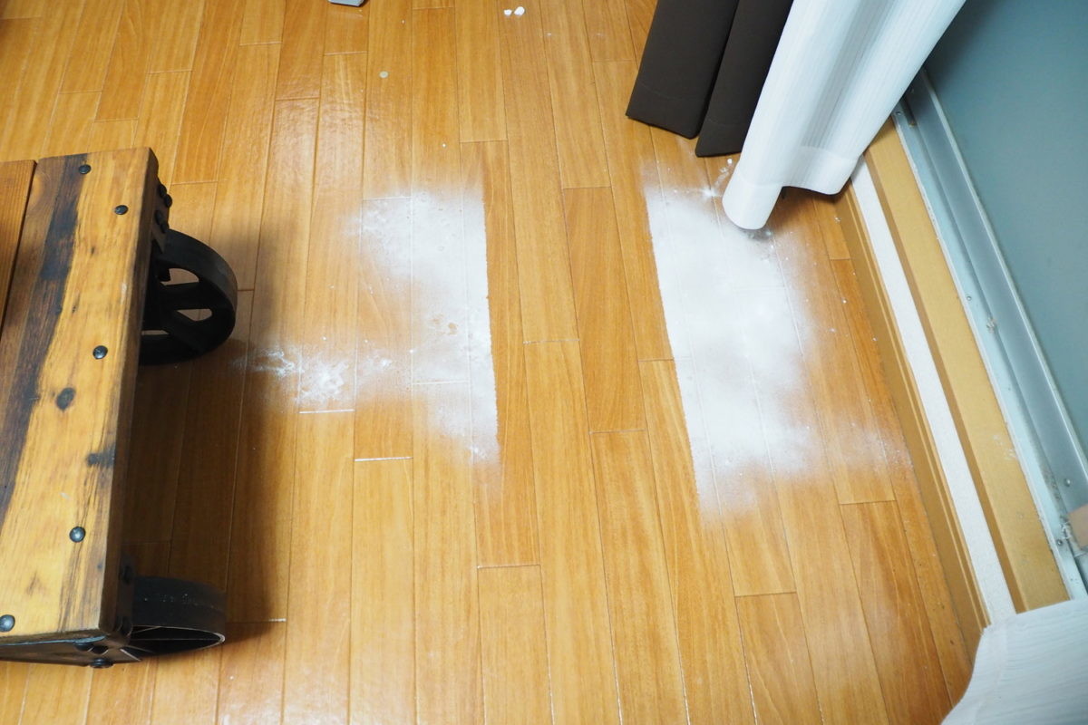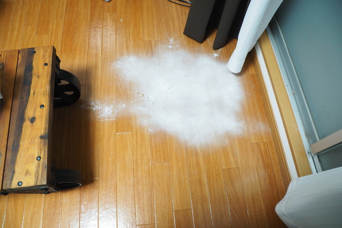 掃除機にとって最も重要な吸引力のテストもおこなった。フローリングと畳の2か所に重曹を撒き、標準モードで奥に一方向、進む形で掃除してみた。結論から言うと、吸引力は決して低くない。フローリングはわずかに目地に残ったのと、大きく固まっていた重曹を吸わずに押してしまっていたが許容範囲。畳は目視する限りでは取りもらしはなかった。同じ場所を「Dyson V11」でも掃除してみたが、フローリングではわずかにダイソンが優秀だった(取り漏らしなし)が、畳では差を見つけられなかった。