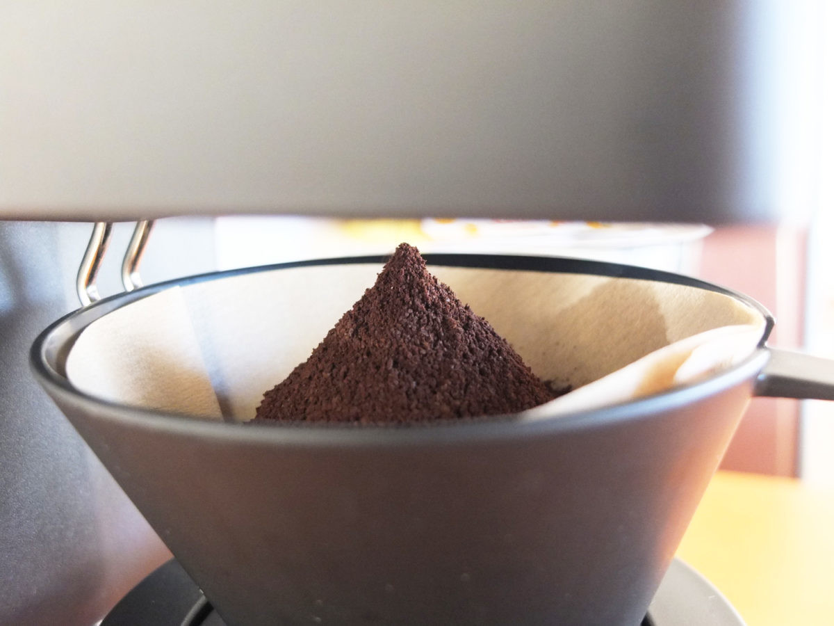 次にミルの「粗挽き/中挽き/細挽き」の粒度(粒の細かさ)を確認【その2】。中挽きで淹れたときと細挽きで淹れたときの味の違いも吟味しました。
