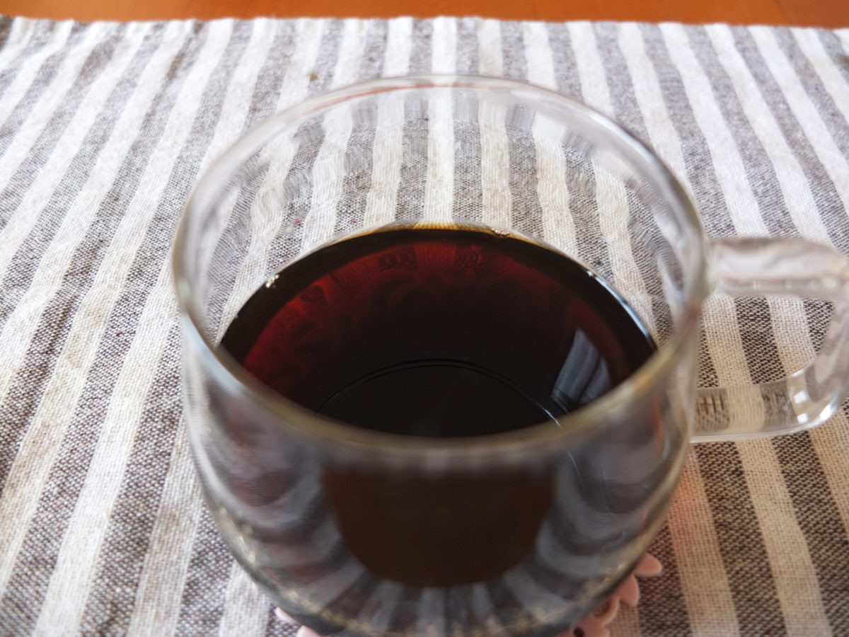まずはグアテマラ。中挽きで2杯ぶんを作りましたが、爽やかな酸味が口から鼻に広がります。果実系のフレーバーも印象的。ただし時間が経つと酸味の爽やかさ、鮮烈さが薄れていくので、淹れたぶんはすぐに飲み切るのがオススメです。ちなみに、筆者がふだん使っているコーヒーメーカーでは、酸味の鮮烈さが物足りない印象でした。