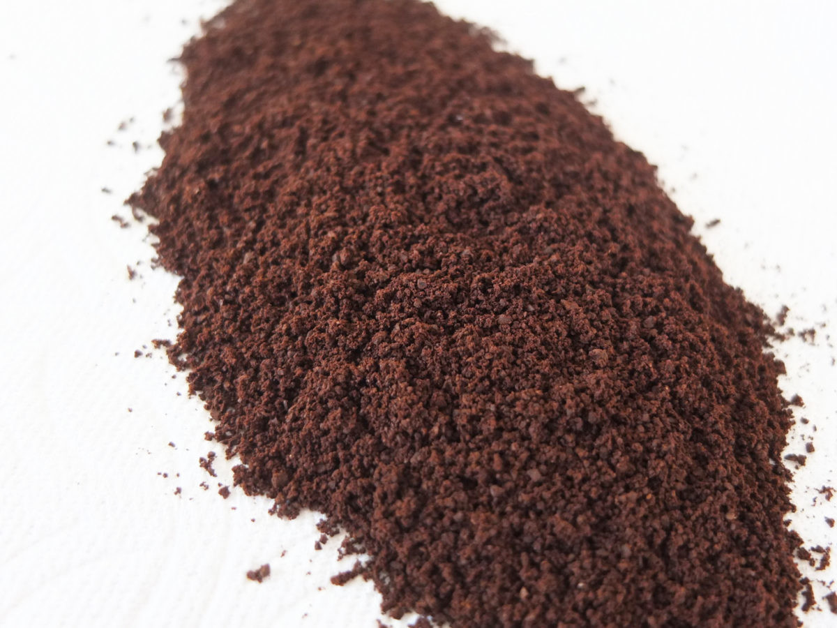 ちなみに、自宅で使っている他社製コーヒーメーカーで「細挽き」で挽いた粉と比較してみると、粒はCM-D465Bより大きめで、一粒一粒が鋭角にカットされているように見えます。粉のしっとり感も弱めでした。