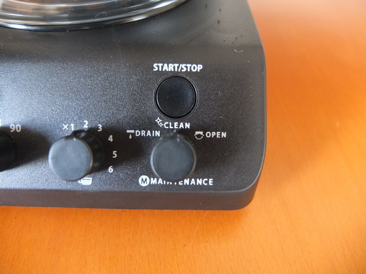 水タンクは長く使っていると底の部分にカルキが白く固着してきます。本機はタンクが取り外せないので水洗いはできませんが、その代わりにクエン酸洗浄が可能。メンテナンスダイヤルで「CLEAN」を選び、水とクエン酸を入れてスタートボタンを押すと約90℃で煮沸。汚れが落ちたらメンテナンスダイヤルを「DRAIN」にセットし、タンクの水(お湯)を排水します。