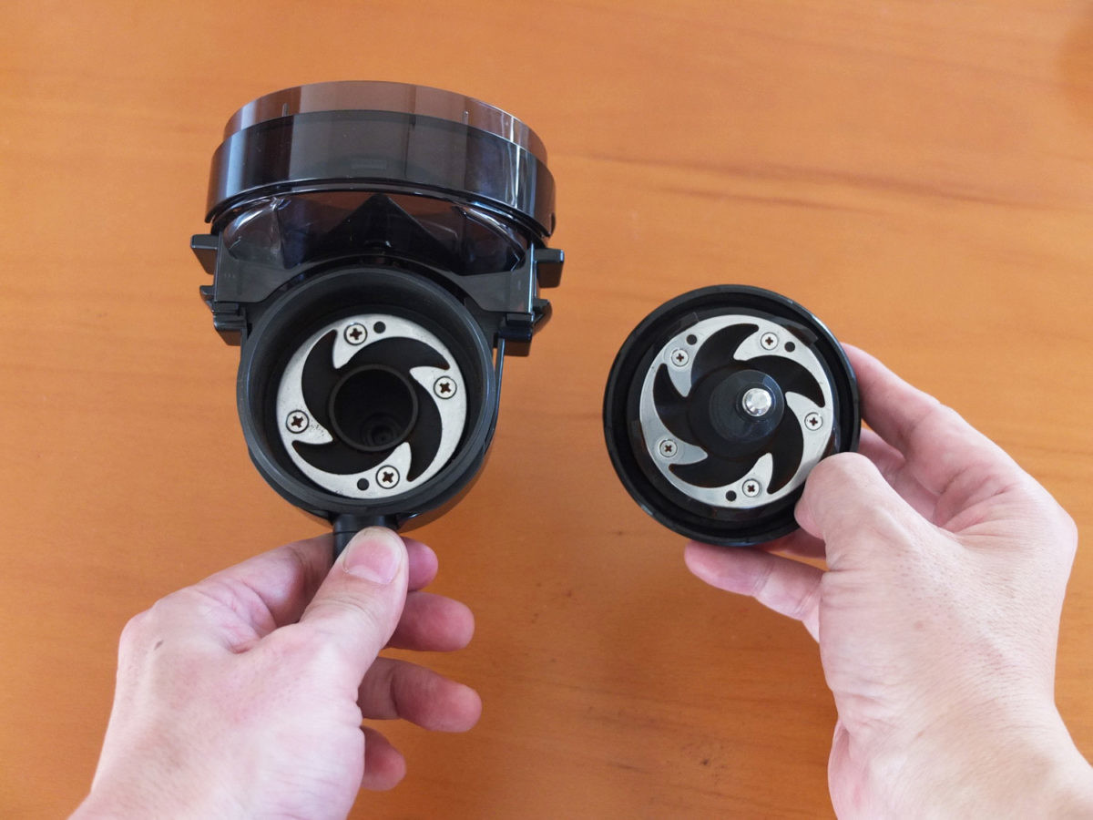 ただし、気になったのが、ミルを外してみるとかなり大量のコーヒー粉が残っていたこと。ミル内を長く掃除しなかったり、6杯ぶんなど大量に挽くと、内部に思いのほか大量のコーヒーの細粉や挽き残しが入っていてビックリ。