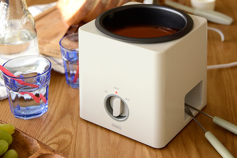 チョコレートフォンデュやチーズフォンデュなどが家庭で楽しめるフォンデュメーカー。スイッチを入れると内部の鍋が80℃に加熱され、手軽にフォンデュができます。電源は一目でわかるオフ、ヒート、キープの3段階。専用のフォーク、お玉、ヘラ、流し型、レシピブックがセット。レシピは手作りソースも含め全50種類を掲載しています。
