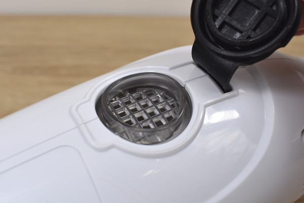 吸引が終わったら本体の裏側にある配水キャップを外し、そのまま配水口を下に向けてタンクに溜まった水を排出。タンク内の掃除は給水口を外して本体先端から水を入れ、もう1度排出するだけなので楽チンでした。