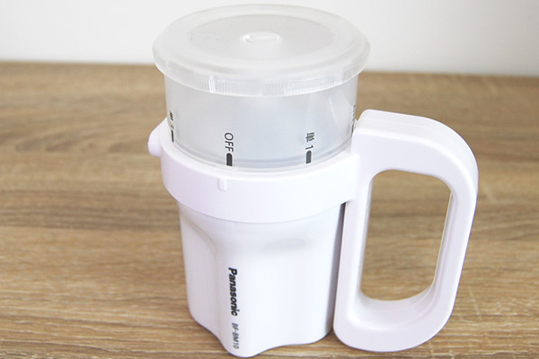 同商品のサイズは、約135(幅)×80(奥行)×125mm(高さ)ほど。ミニペットボトルとほぼ同じくらいの大きさで、持ち歩きにとても便利そうです。取っ手部分は誰でも握りやすい“大型ハンドル”となっていました。