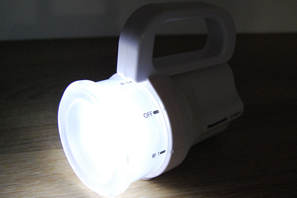 試しに使ってみた結果、真っ白なLEDライトが周囲を明るく照らしてくれました。どの電池を使っても明るさに変化はありません。ちなみに、ライトは縦に置いたらランタンとして使うことも可能。万が一明かりが切れても、別機器の電池で代用できるのはありがたいですね。
