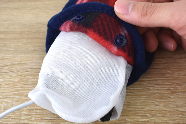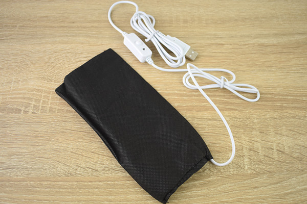 カバーの中にはヒーターユニットとシリカゲルバックが。ヒーターは電源をONにすると、おおよそ40~45度まで温まります。シリカゲルバックは中にビーズが入っているため、程よい重みを感じられるよう。ちなみにヒーターユニットとシリカゲルバックは取り出せるので、カバーを手洗いできますよ。