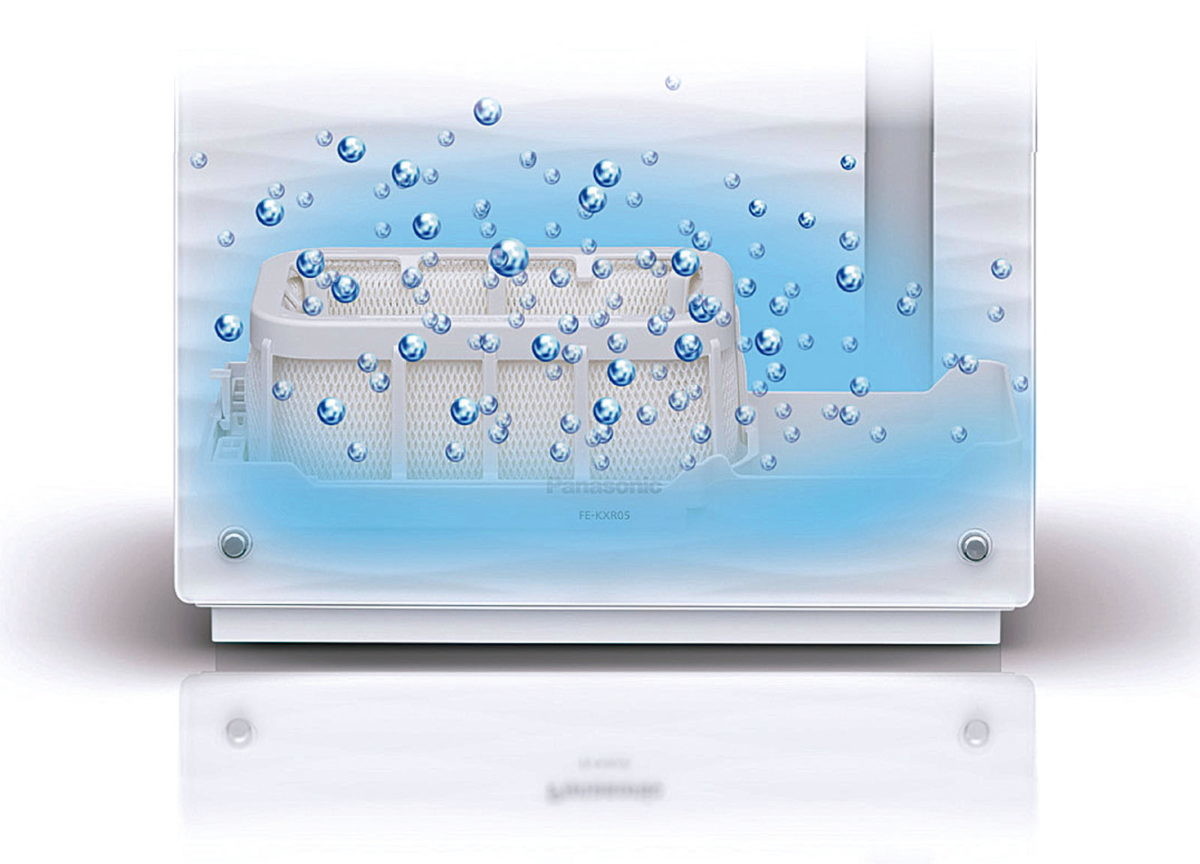 DCモーターの高速回転で、高い省エネ性と加湿効率を同時に実現。独自イオン「ナノイー」放出機能で、肌のうるおいスピードが約3倍にアップします。加湿フィルターは月に1回押し洗いするだけで、約10年間交換不要です。