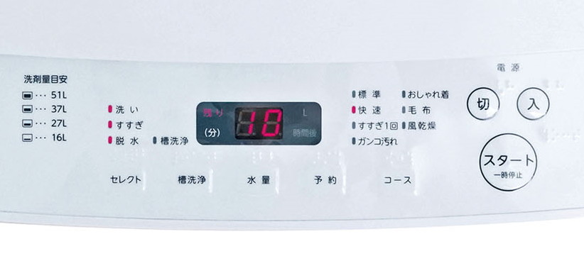 天面手前の操作パネルで8種類の洗濯コースから選択。「快速モード」や、干し時間を短縮できる「風乾燥コース」など実用性の高いものに絞り、この価格を実現しました。