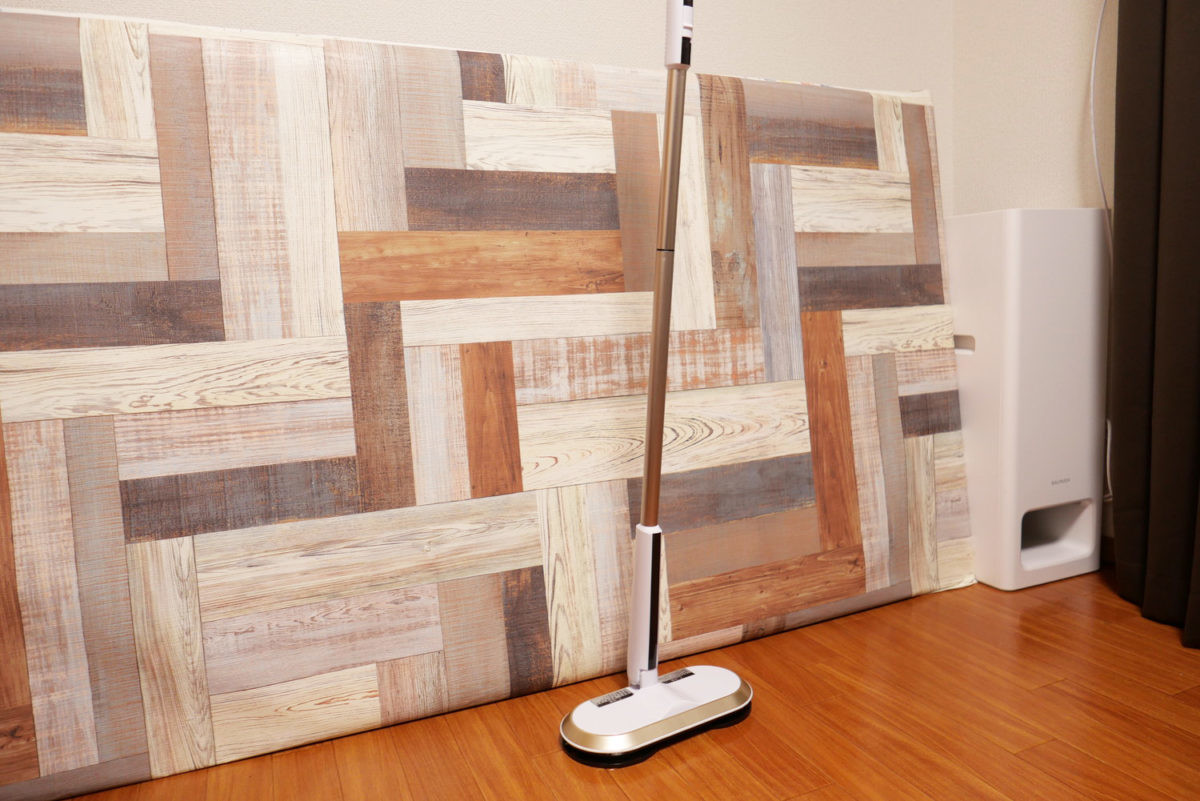 しかし、モップパッドの取り付け位置と手洗いの問題を除けば、あとはスムーズ。モップがヘッドからわずかにはみ出すので、部屋の壁際の掃除もしやすいです。掃除機をかけたあとなど、仕上げにさっと拭き掃除できるのがうれしいところ。サイズがそれほど大きくなく、スティック部分も取り外しができるため収納時もかさばりません。