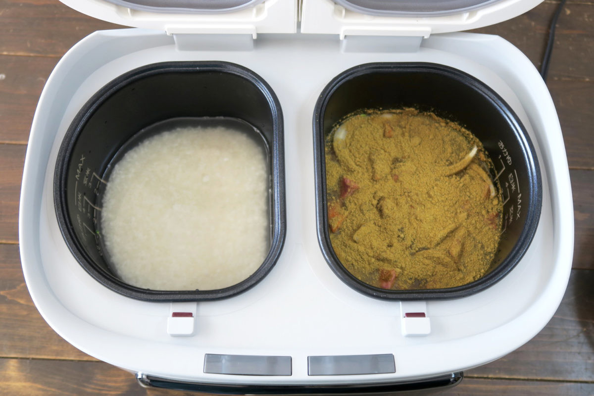 先ほどは反省点がいろいろ出てくる結果となりましたが、もっといい使い方があるはず。例えば、すでに炊飯器があるならごはんは炊飯器に任せて、ほかの料理だけ作ればいいのでは? というわけで、今度はツインシェフでおかずを4品同時に作ってみることにしました。