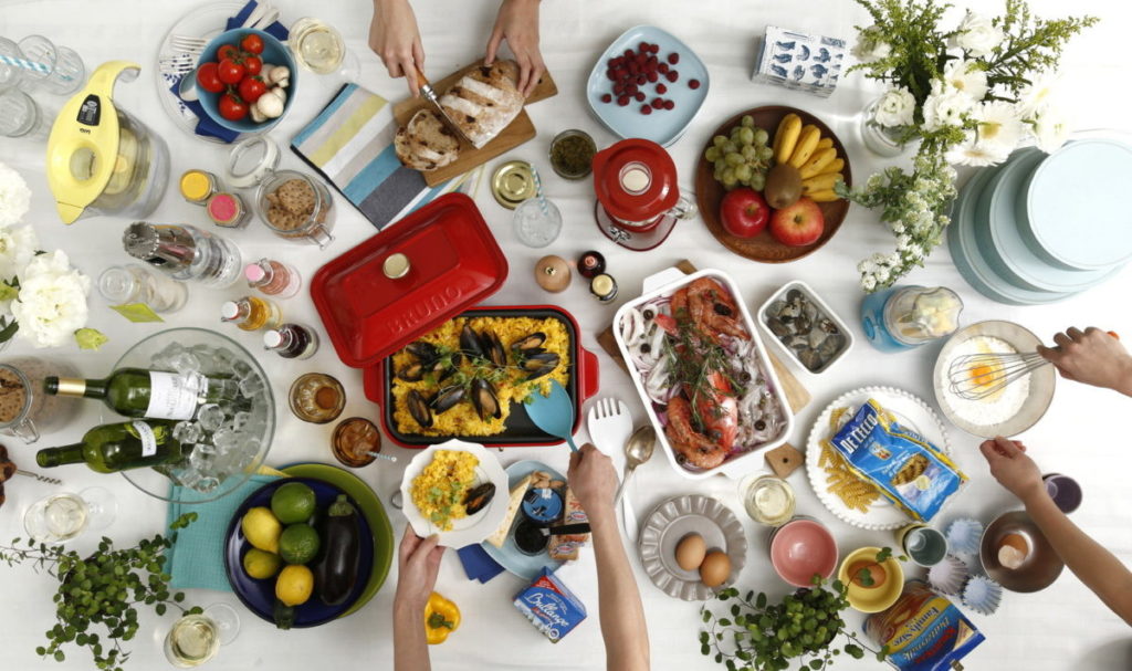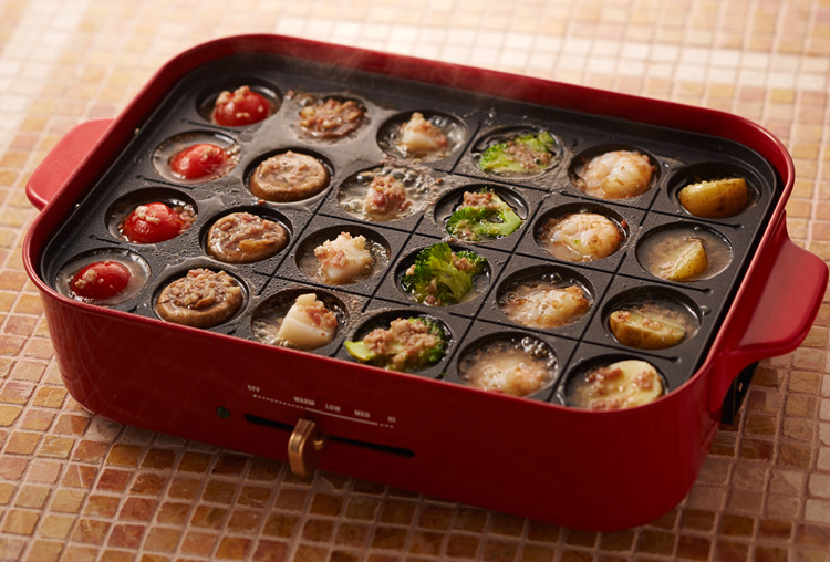 次なるポイントは「オリジナルレシピを提案したこと」。現在では当たり前のようにレシピサイトに載っている、ホットプレートを使ったパエリアやアクアパッツァ、そして、たこ焼きプレートを使ったアヒージョといった、いわゆる”映えレシピ”を用意したのは「BRUNO コンパクトホットプレート」が先駆けだった。